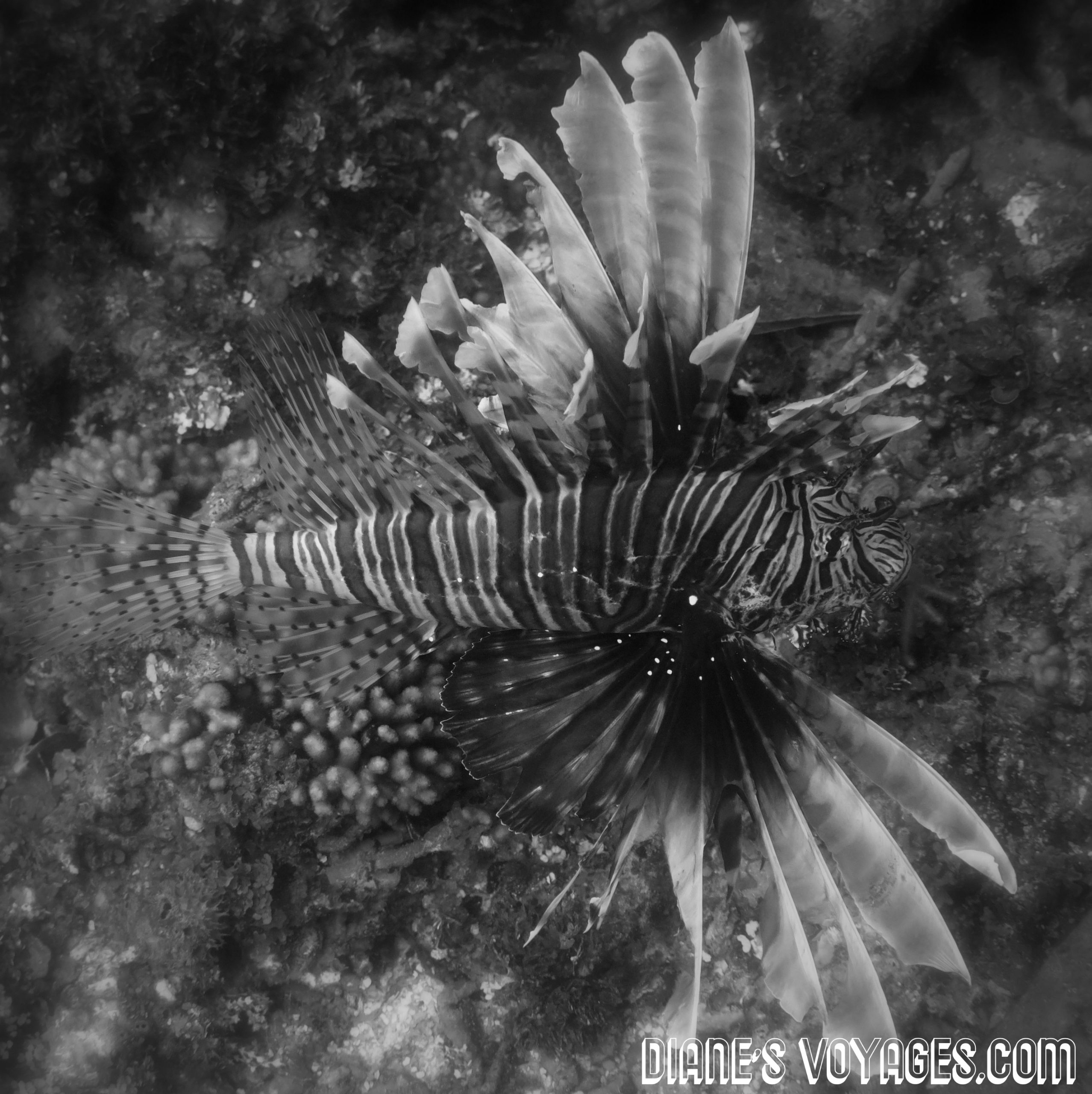La rascasse volante ou poisson lion est un poisson coloré et rayé. Il est pourvus de nageoires à longs rayons équipées de glandes contenant un puissant venin. Ce dernier n’est pas mortel (contrairement ou poisson pierre) par contre cela déclenche des douleurs très importantes.