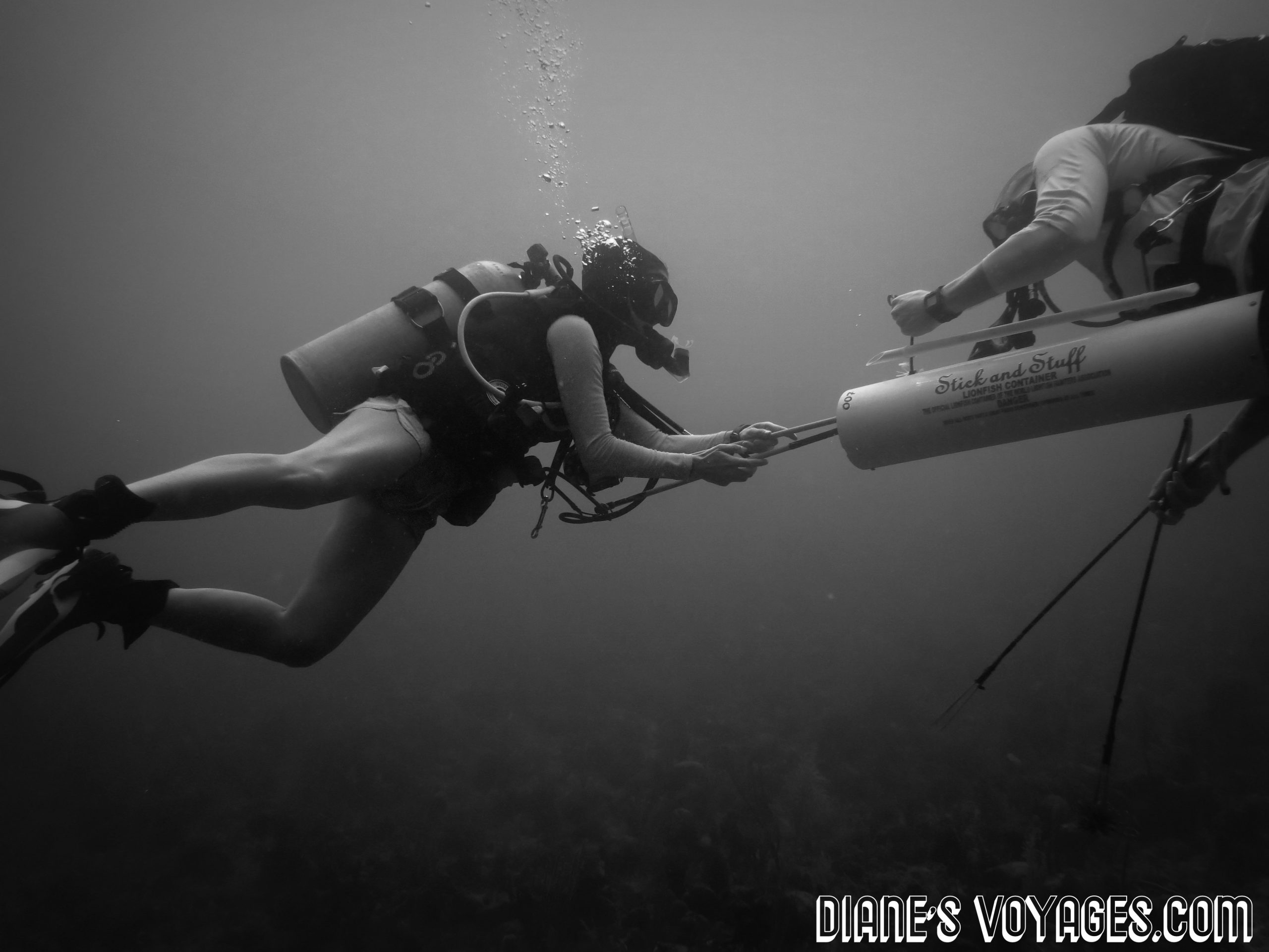 - Des derby sont par exemple organisés sur Utila pour qu’un nombre maximum de poissons soient capturés et tués. Le seul problème est qu’à UDC nous avons observé que les poissons descende de plus en plus bas. Nous pensons que les humains étant devenus leurs prédateurs ils s’adaptent à des profondeurs de plus en plus importantes. C’est pour cette raison que de très nombreux plongeurs techniques les tues à 70 m-80 m. De plus, lorsque nous allons à la chasse nous essayons d’être un groupe de 3 personnes 1 qui repère les poissons et notes des informations importantes (quel site, groupe de combien, quelle profondeur, quelle température, estimation de leur taille), c’est informations sont ensuite compilés et envoyés à des scientifiques.