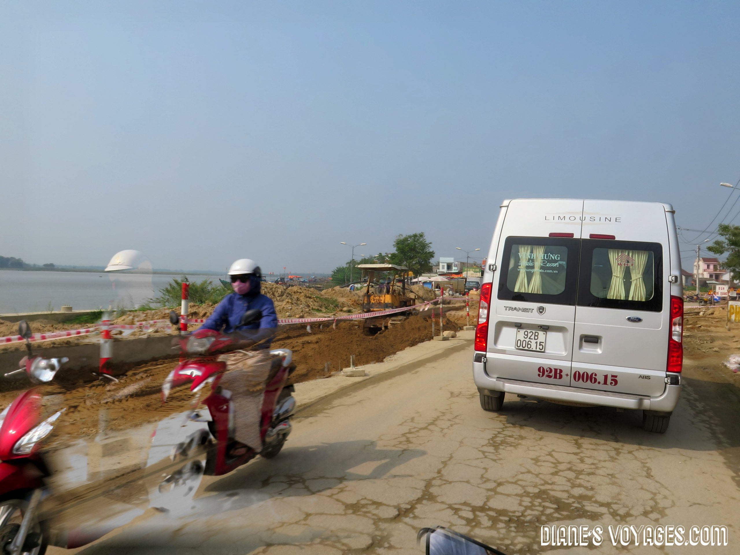 Aujourd’hui c’est décidé direction les ruines de My Son qui se trouve à environ 40 kilomètres de Hoi An. D’après google map nous en avons pour 1h30 en voiture et avec maps.me on est a 40 min bon en réalité on a mis 1h environ car il y avait presque 20 km de route en construction ….